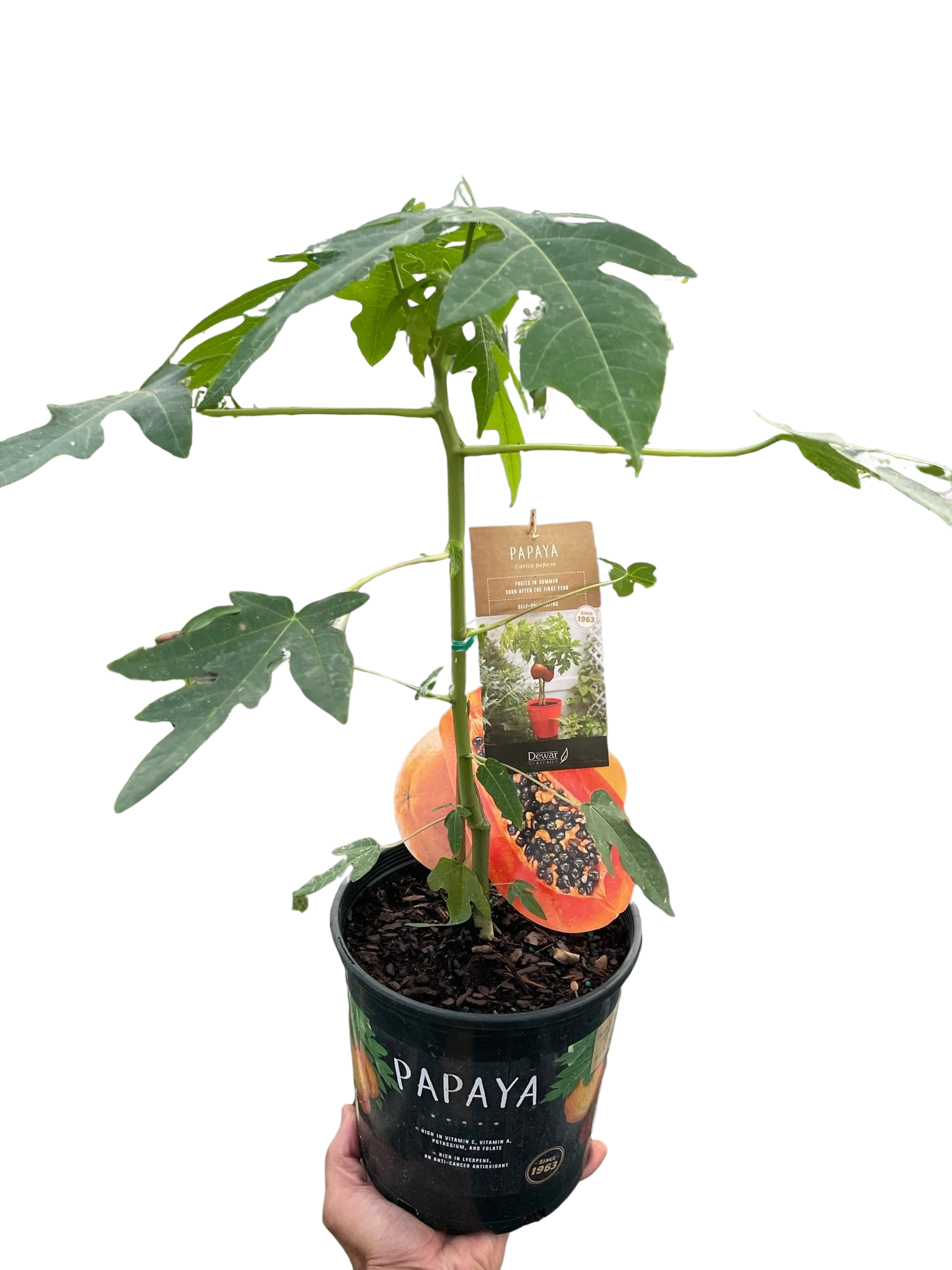Experience the allure of the tropics with our Papaya Tree, a petite powerhouse of exotic flavor and lush greenery. The Carica papaya species graces your home or garden with its broad, deeply lobed leaves and promises the tantalizing reward of sweet, juicy papayas. Perfectly suited for sunny indoor spots or a sunny patio, this compact papaya tree thrives in warm, humid conditions, making it an ideal choice for tropical plant enthusiasts. With proper care and ample sunlight, expect this miniature marvel to grow and eventually bear fruit, bringing the essence of the tropics right to your doorstep.